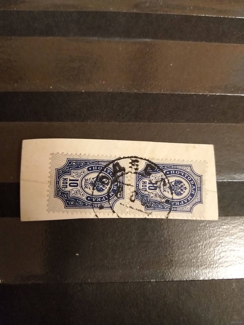 1904 Царская Россия сцепка марок Загорский 76 на вырезке гашение Одесса герб (1-1)