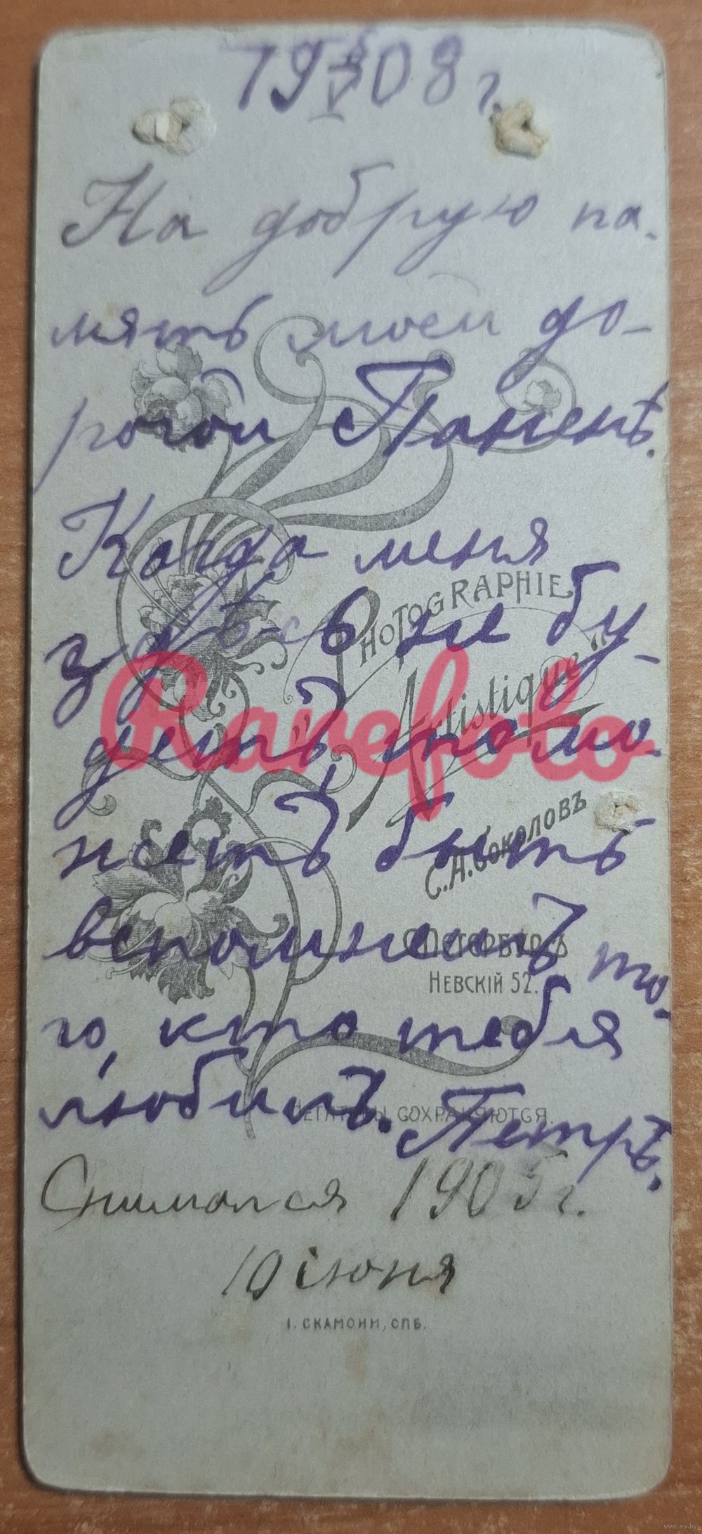 1905 Редкий узкий формат портрет гимназист студийное фото типажи ретро фотограф Соколов СПБ