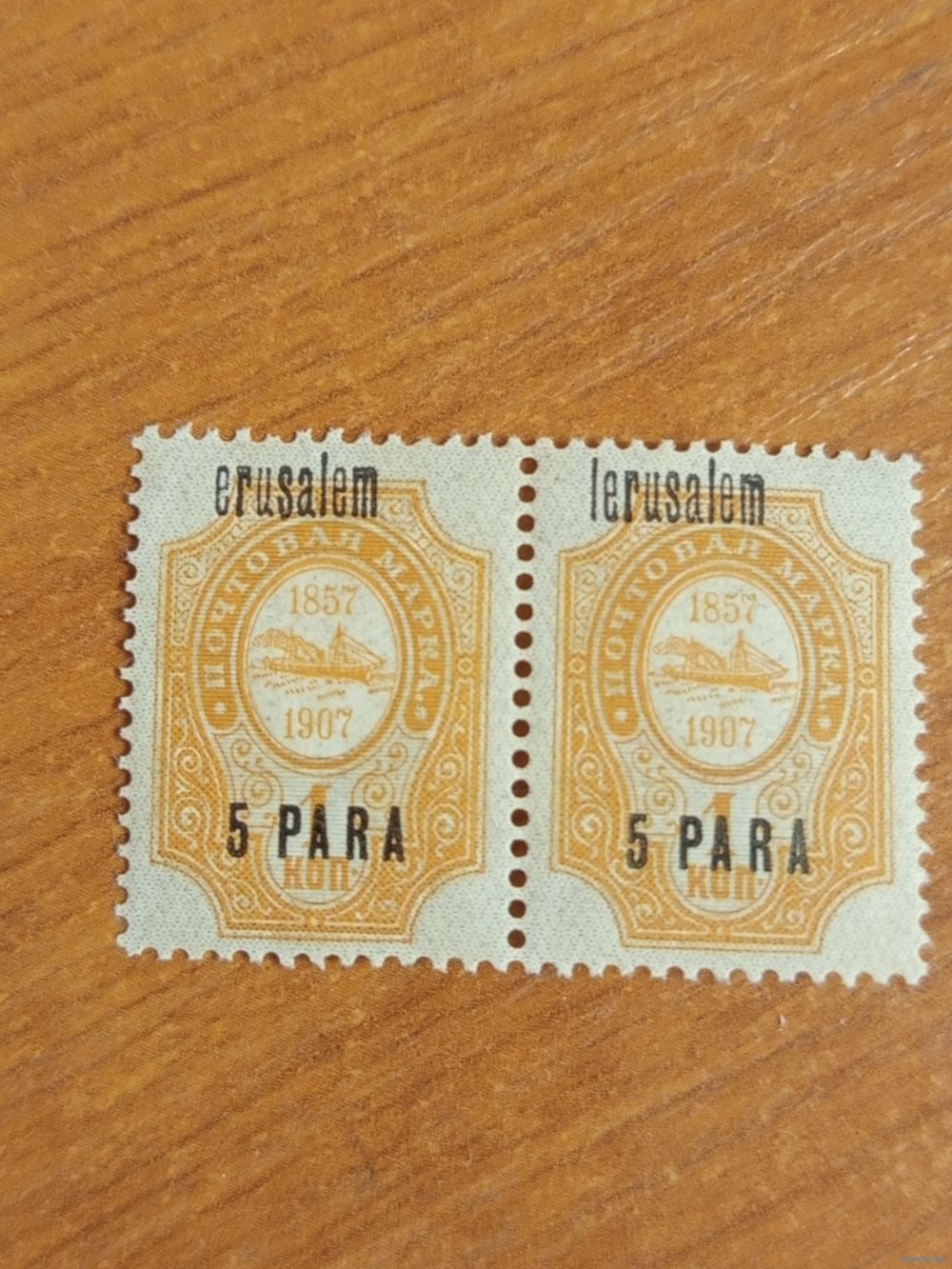 1909 Россия РОП иТ пара надпечатка Иерусалим разновидность одна без I чистая клей MNH** герб корабль флот (3-3)