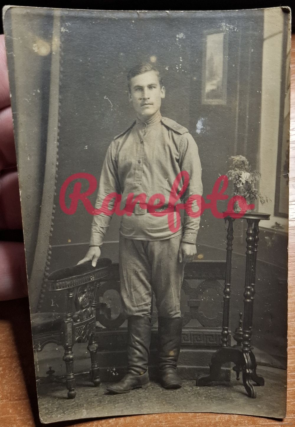 1910-е Открыточный формат солдат 66-й полк Пригодич Максим Емельянович РИА подписана студийное фото типажи ретро