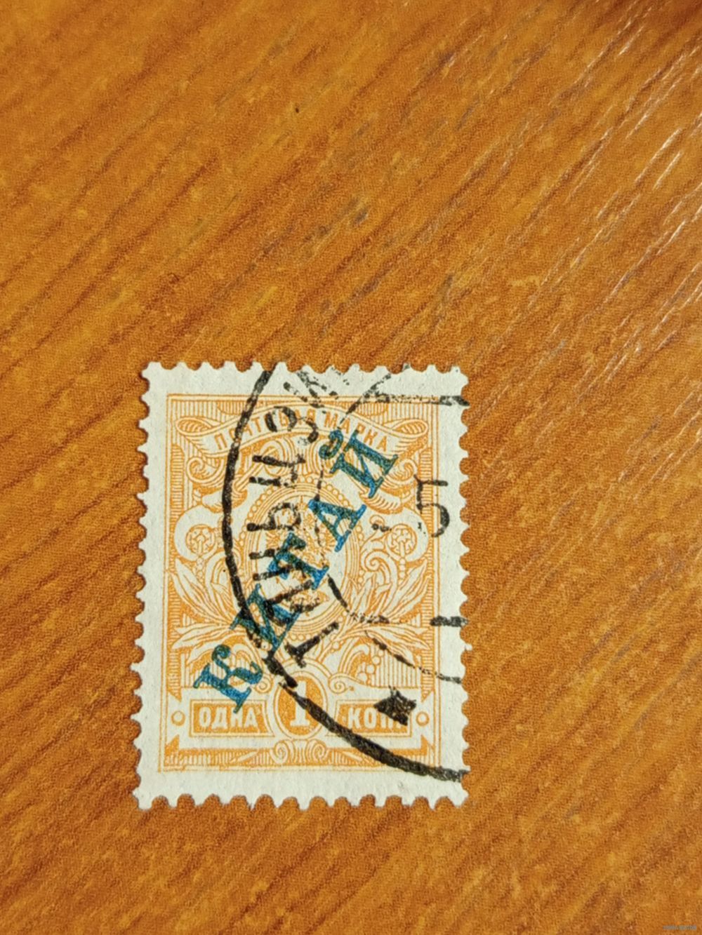 1910 Россия Русская почта в Китае Мих 20а надпечатка светло-синяя герб (2-6)