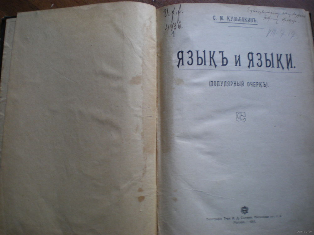 1911 КУЛЬБЯКИН ЯЗЫК И ЯЗЫКИ С АВТОГРАФОМ АВТОРА