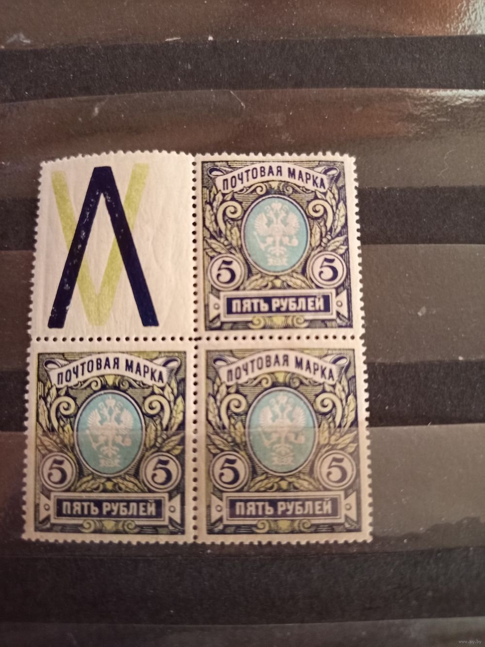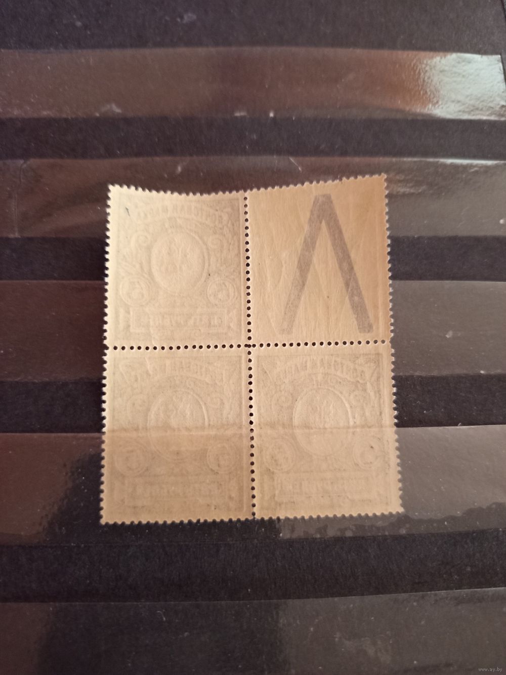 1915 Россия Загорский 134 квартблок с контрольным знаком чистый MNH** герб (4-13)