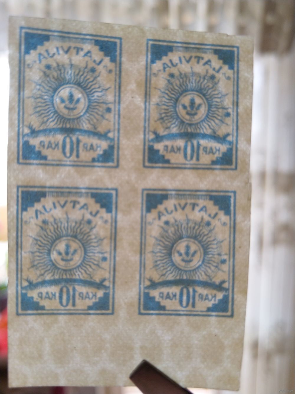 1919 Латвия Мих 17 квартблок чистый клей MNH** 1 лёгкая наклейка (2-12)