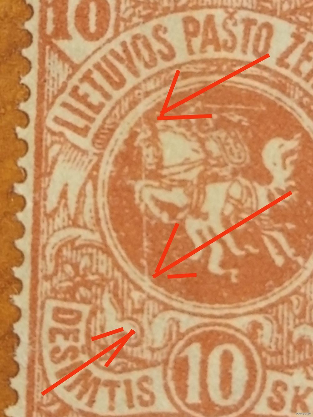 1919 Литва Мих 50 разновидность трещина клише герб Погоня (3-13)