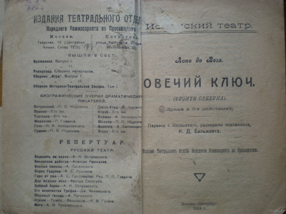 1919 ЛОПЕ ДЕ ВЕГА ОВЕЧИЙ КЛЮЧ