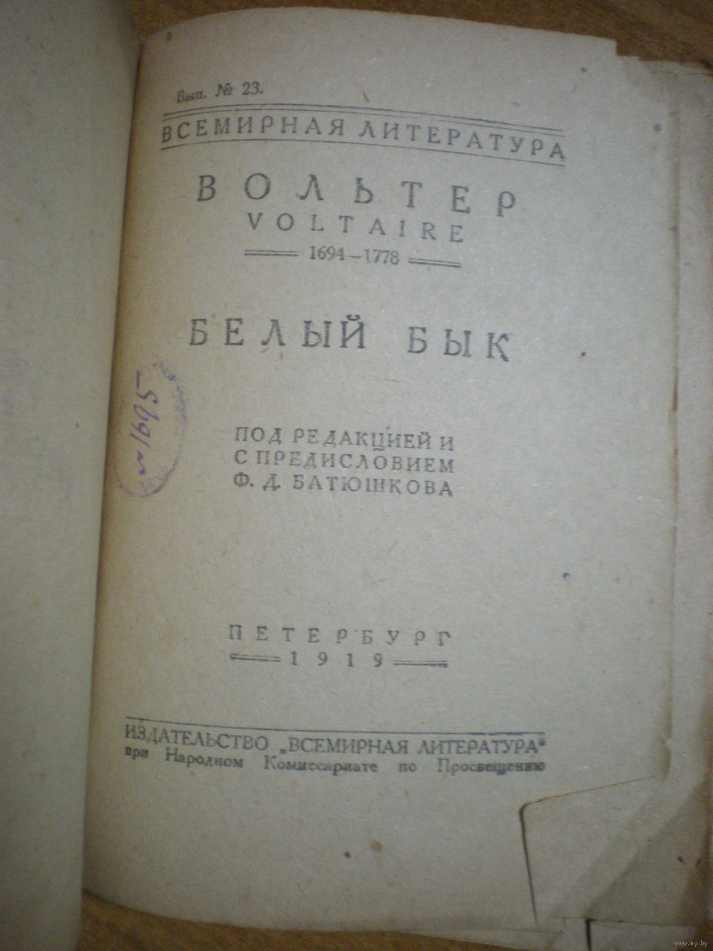 1919 ВОЛЬТЕР БЕЛЫЙ БЫК