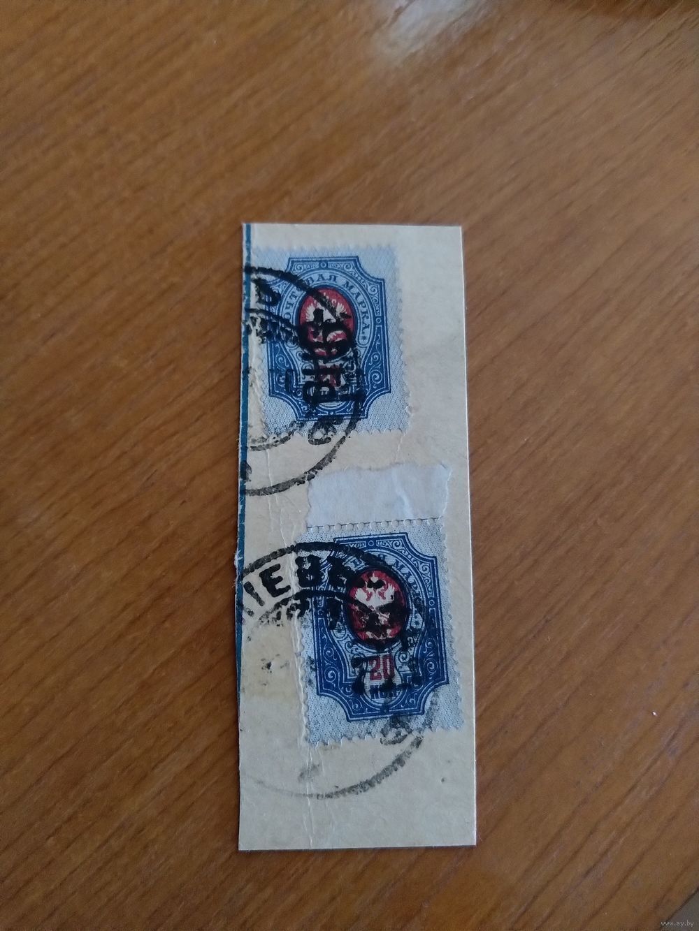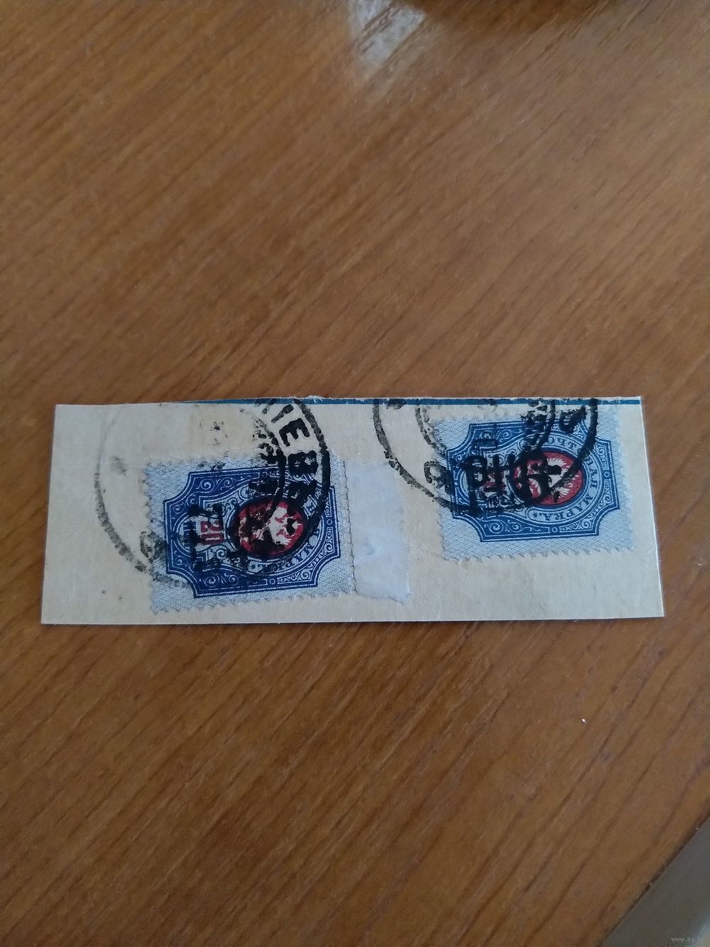 1920 Украинская ССР харьковские провизорные надпечатки РУБ вырезка оригинал гашение Змиев Харьковской губернии герб (3-8)
