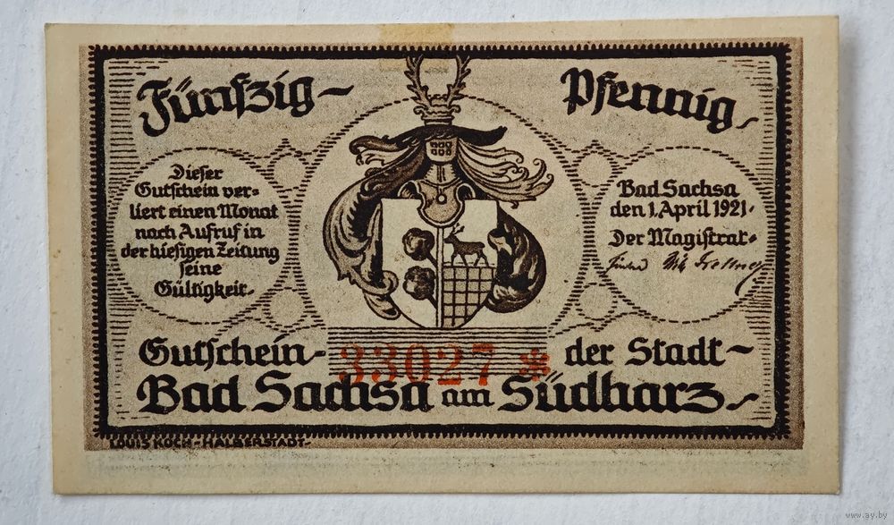 1921 год 50 пфеннигов Германия