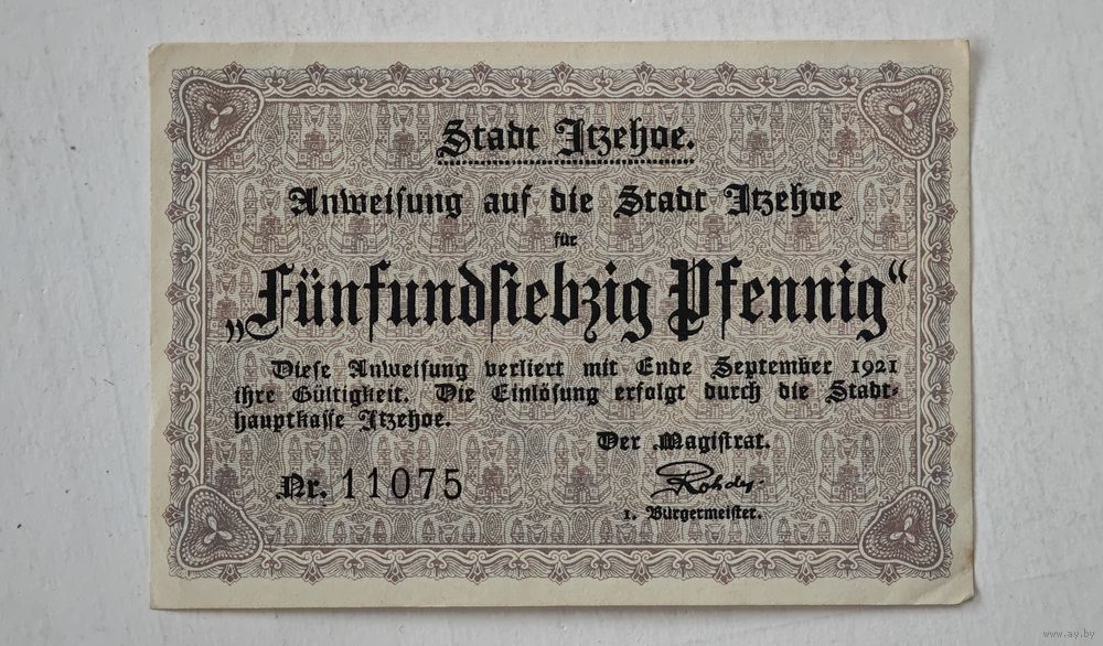 1921 год 75 пфеннигов Германия