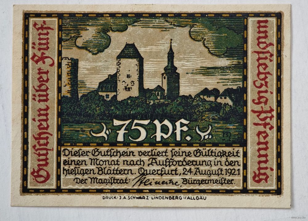 1921 год 75 пфеннигов Германия