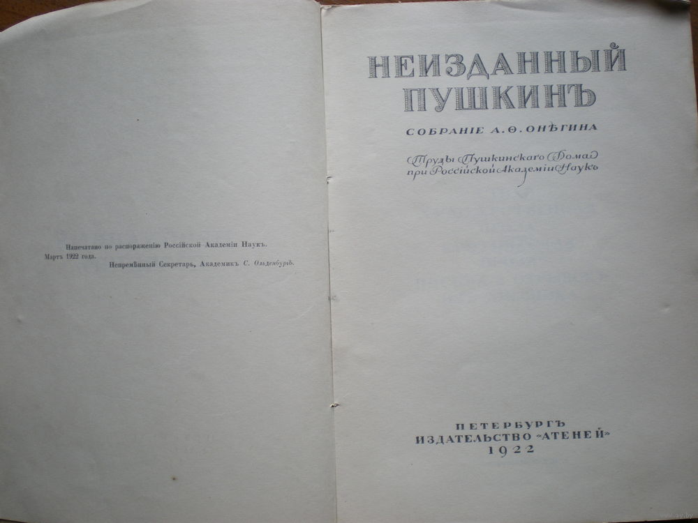 1922 НЕИЗДАННЫЙ ПУШКИН