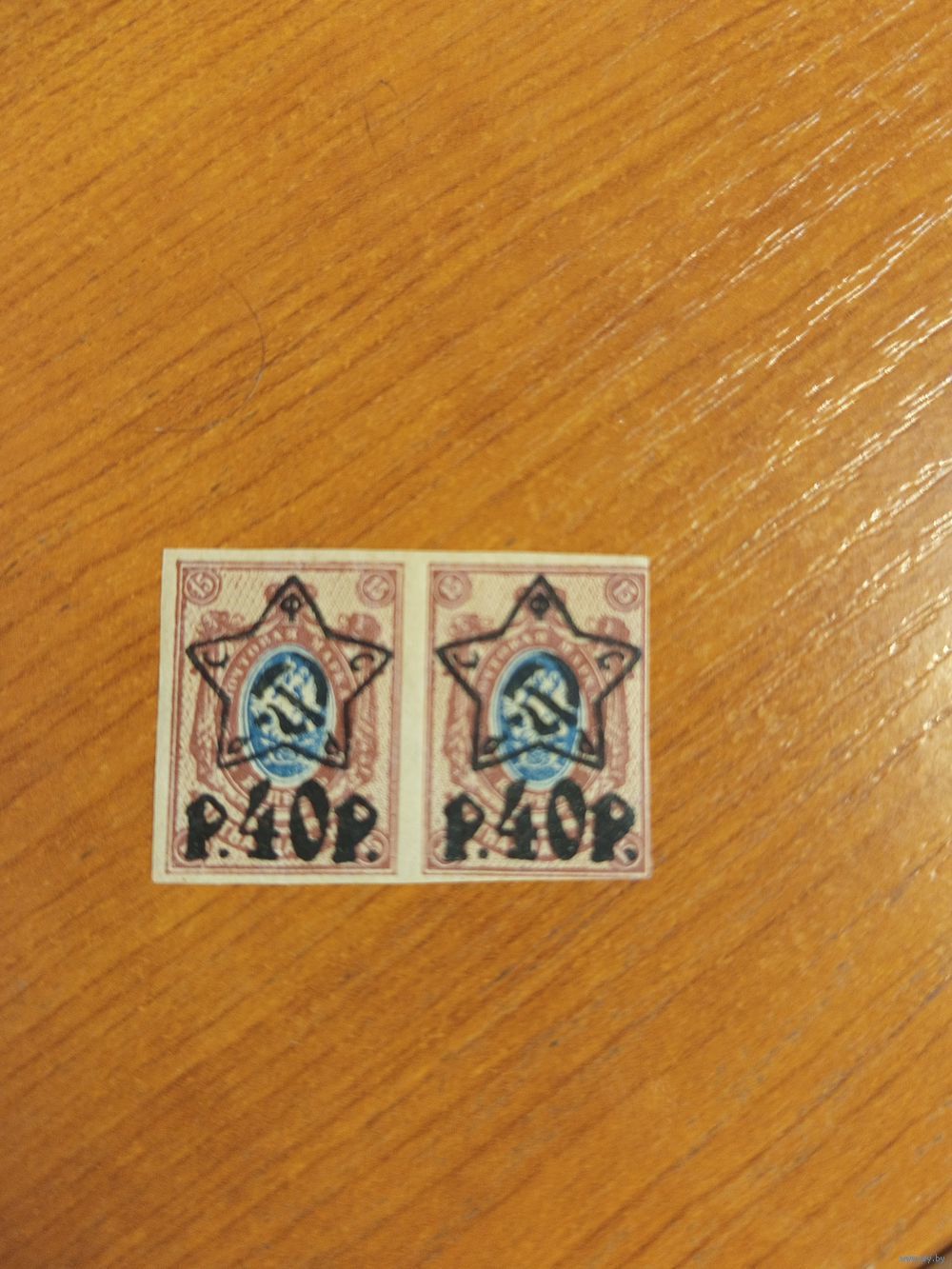 1922 Советская Россия РСФСР литографская надпечатка чистая пара клей MNH** герб (2-8)