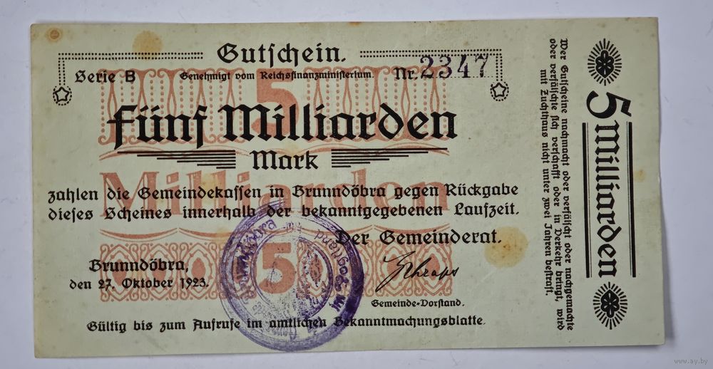 1923 год 5 МИЛЛИАРДОВ марок Германия