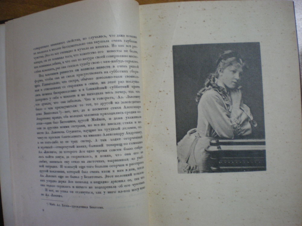 Первое и единственное прижизненное малотиражное издание.. Со многими портретами на отдельных листах. Полностью комплектный экземпляр, без штампов. Тираж 3000 экз. / / / Автор — Мария Андреевна Бекетова (1862 — 1938) — русская переводчица, мемуаристка, автор популярных книг для детей, представительница научной и литературной семьи Бекетовых, родная тетя А.А. Блока. Бекетова — автор биографических очерков об Андерсене, Колумбе, книг о Голландии, Шотландии, Ирландии и др. После смерти Блока издала три мемуарных книги: «А. Блок. Биографический очерк», «А. Блок и его мать: Воспоминания и заметки» и «Шахматово. Семейная хроника». Из предисловия автора: «Сочувствие, с которым принята была в публике моя книга об Александре Блоке, заставляет меня продолжать писать в том же духе, добавляя свой первый очерк новыми материалами. Относительно первой половины жизни поэта я должна буду довольствоваться только личными воспоминаниями и письмами, так как сестры моей Александры Андреевны уже нет в живых. В остальном мне поможет вдова поэта. Предупреждаю читателей, что многие даты в моей биографии оказались неточными, так как я писала ее, не имея в руках всех бумаг и писем, касающихся Александра Александровича, и пользовалась только указаниями его матери, память которой сильно ослабела в последнее время. Теперь все даты тщательно проверены и исправлены. Портреты и группы, собранные в этой книге, должны были появиться в моей биографии, но не вошли туда по не зависящим от издателя обстоятельствам. Я начну с пояснений и воспоминаний, касающихся этих портретов».