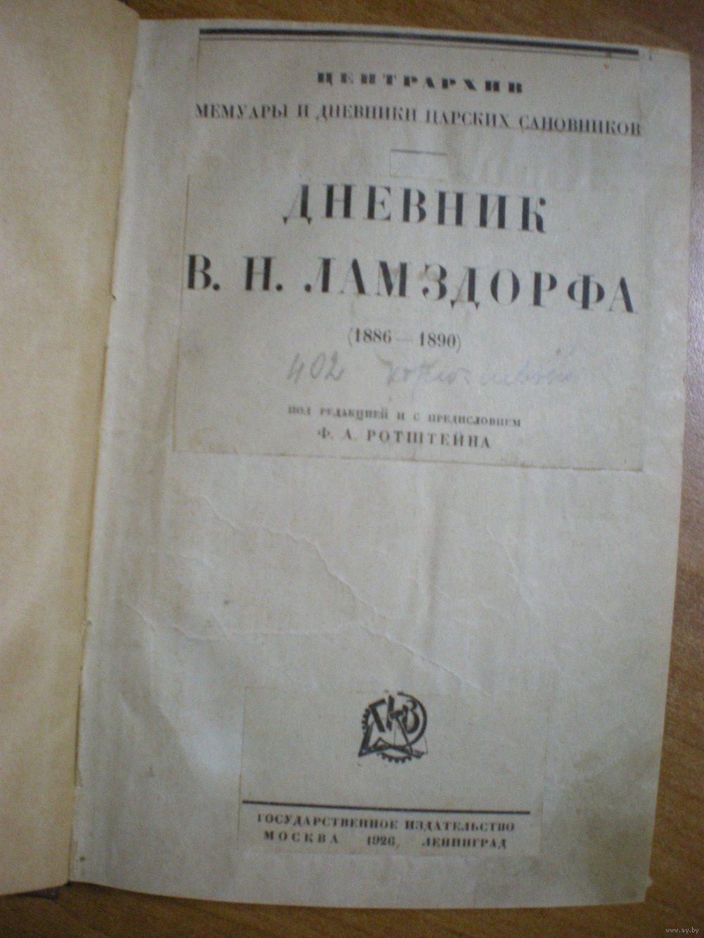 1926 ДНЕВНИК Графа В.Н.ЛАМЗДОРФА (1886-1890)