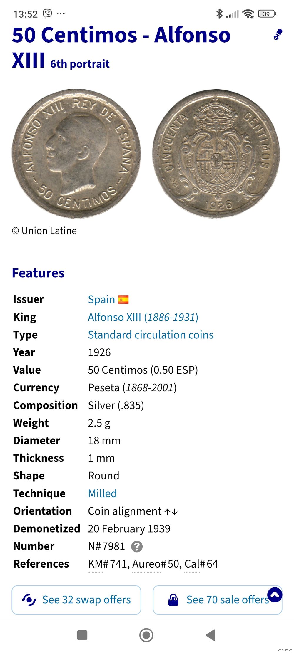 1926 Испания 50 с