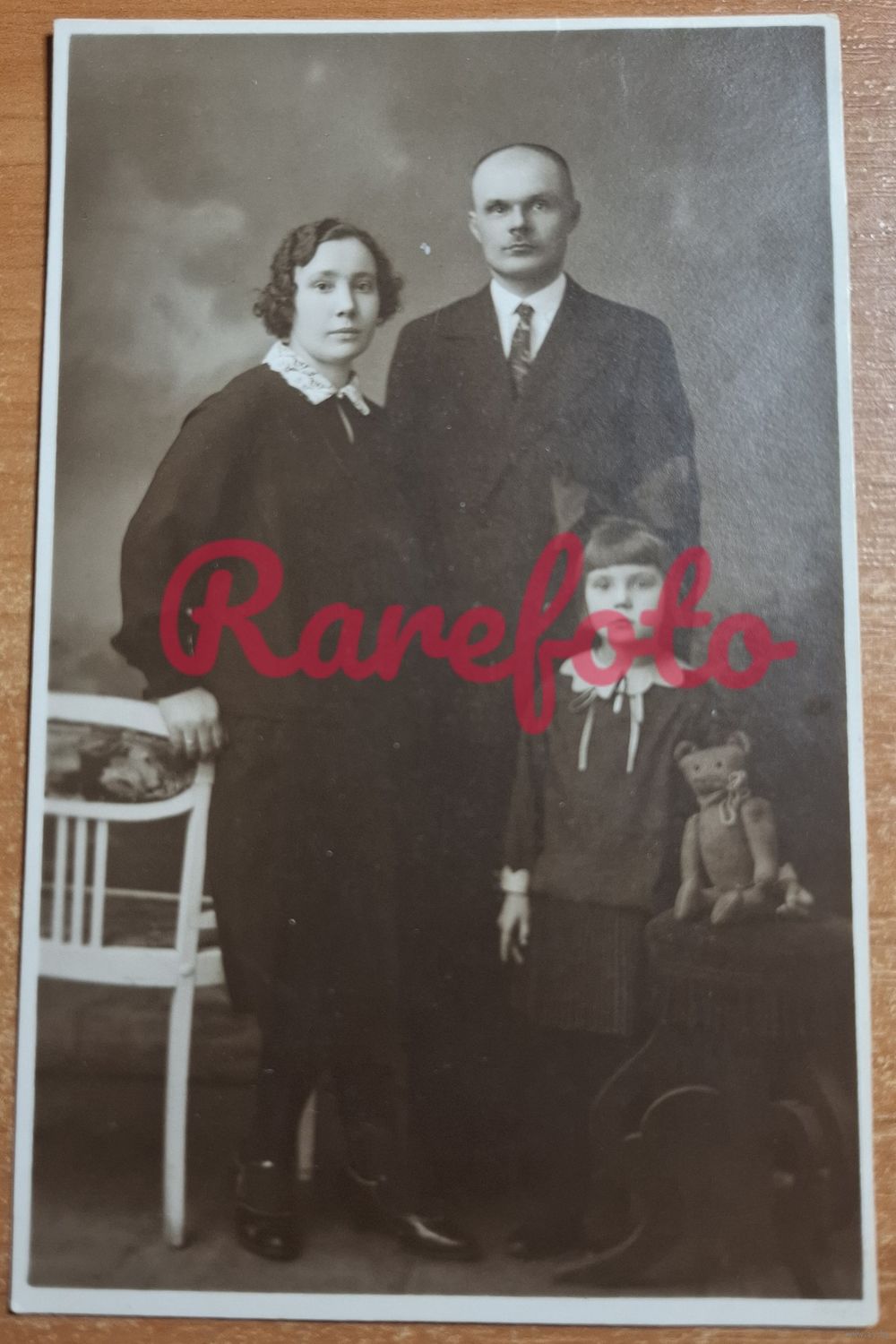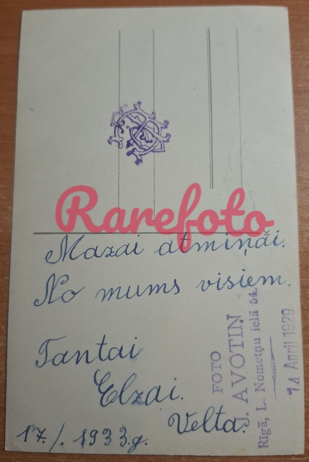 1933 Открыточный формат семья студийное фото печать интересная монограмма фотограф Авотин Рига