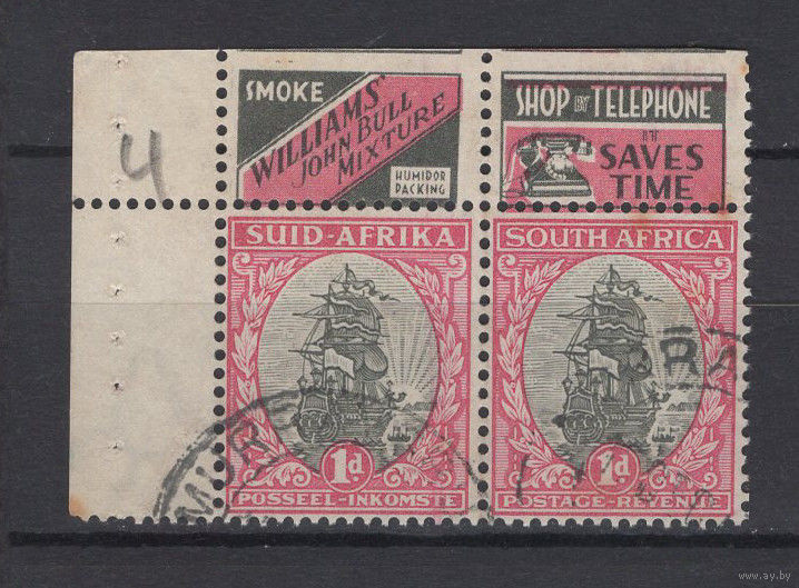 1933 Южная Африка Корабль сцепка 2 марки с рекламой почтовых услуг SG#56e Used