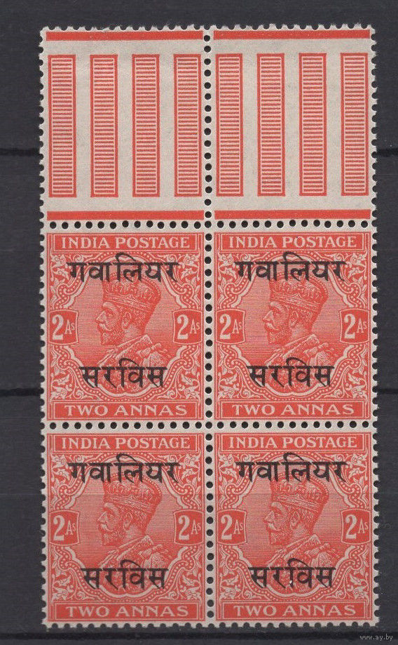 1936 Индия** Георг V сцепка 4 марки с верхним полем (SG#O75)