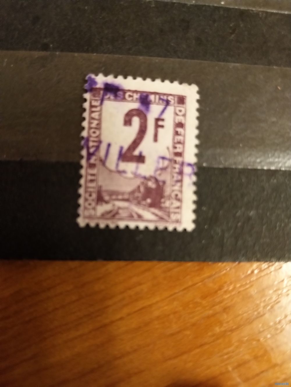 1944 Франция марка оплаты пересылки посылок (пакетов) по железной дороге поезд паровоз Ивер 2 (3-8)