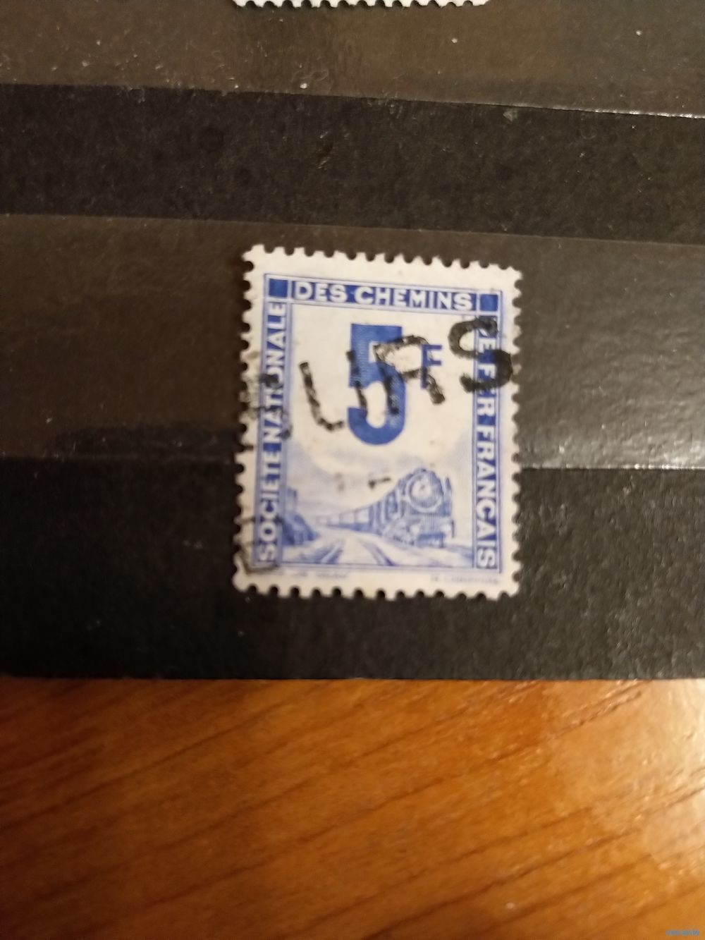 1944 Франция марка оплаты пересылки посылок (пакетов) по железной дороге поезд паровоз Ивер 4 (3-7)