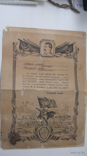 1944 г. Благодарность г. Барановичи