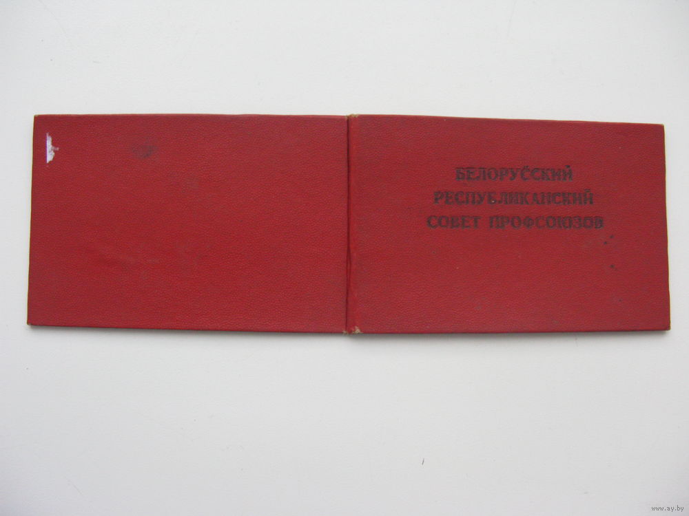 1949 г. Удостоверение Белорусский Совет профсоюзов .