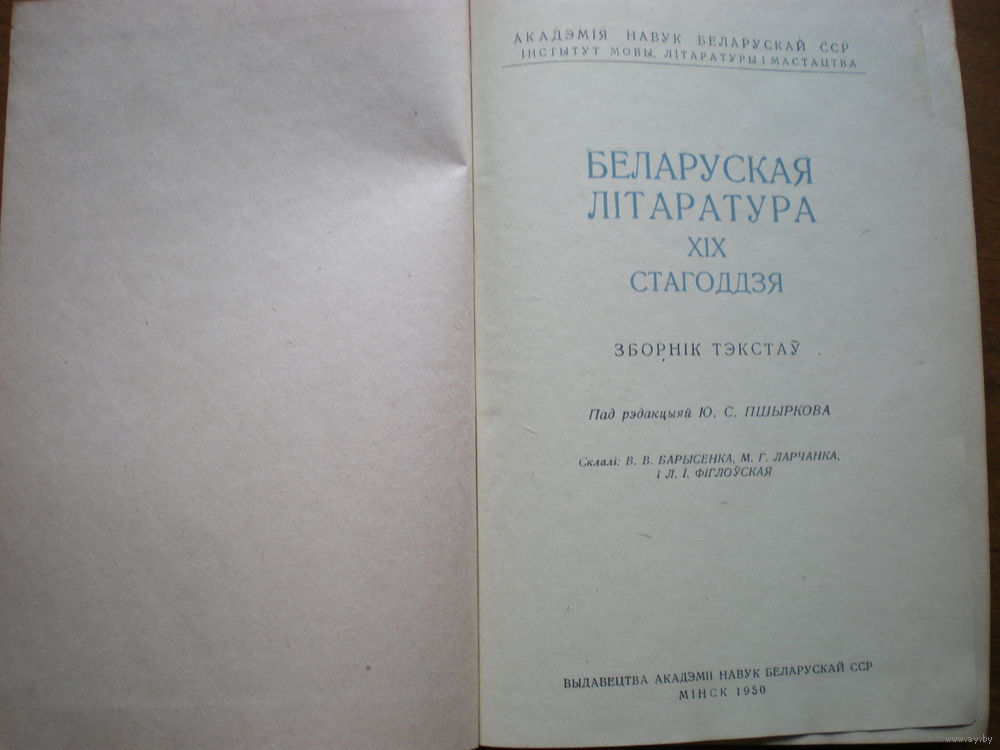 1950 БЕЛАРУСКАЯ ЛIТАРАТУРА ХIX СТАГОДДЗЯ
