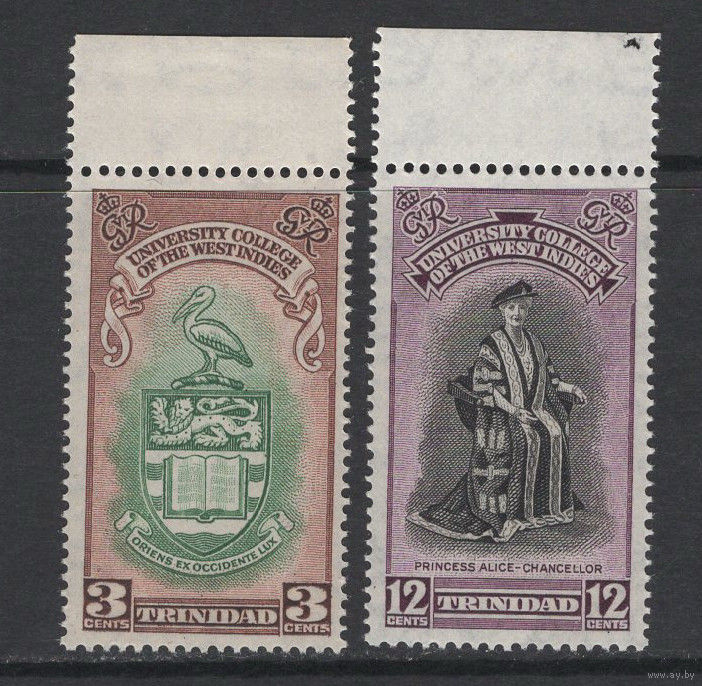 1951 остров Тринидад** Университет, Герб, Принцесса Алиса, пара