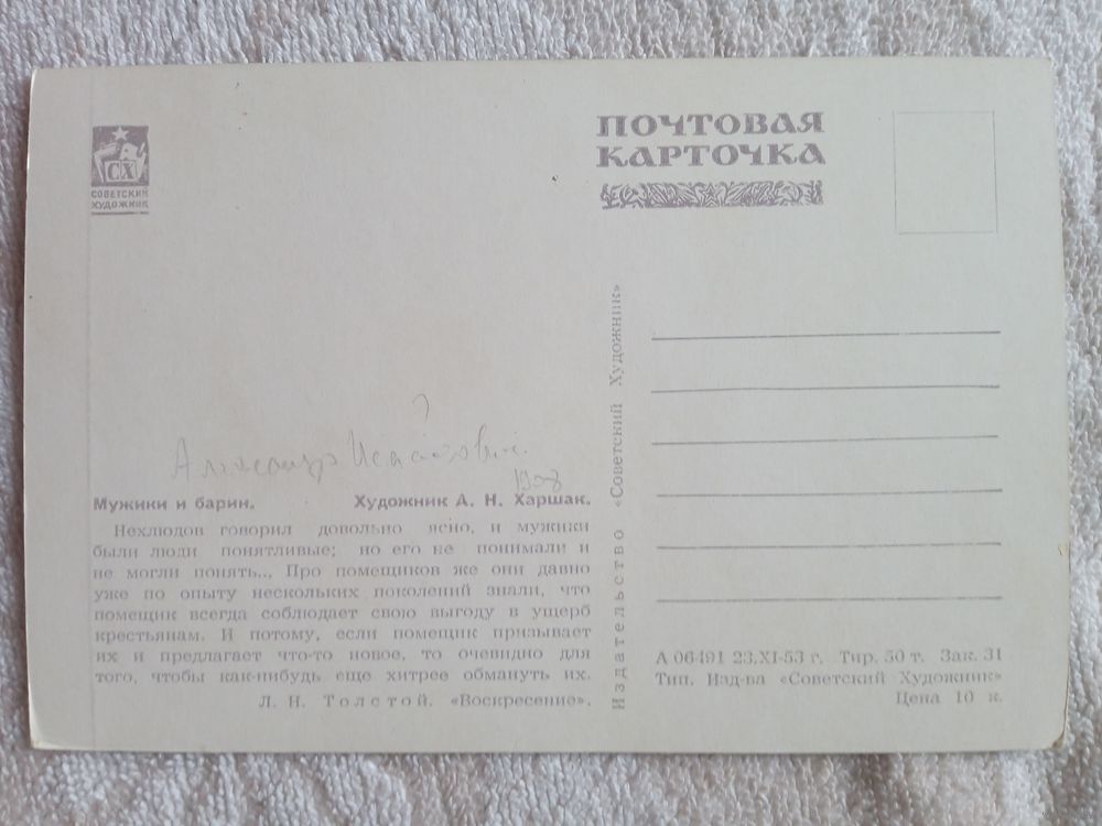 1953. Харшак. Мужики и барин. "Воскресение" Толстого