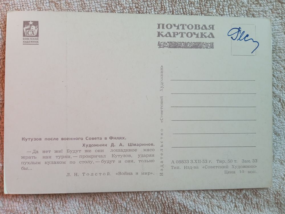 1953. Шмаринов. Кутузов после военного Совета в Филях. Л.Толстой, "Война и мир"