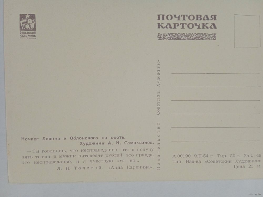 1954. Самохвалов. "Анна Каренина" Толстого. Ночлег Левина и Облонского на охоте