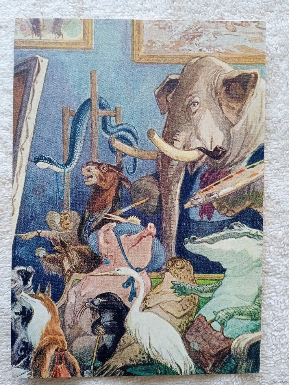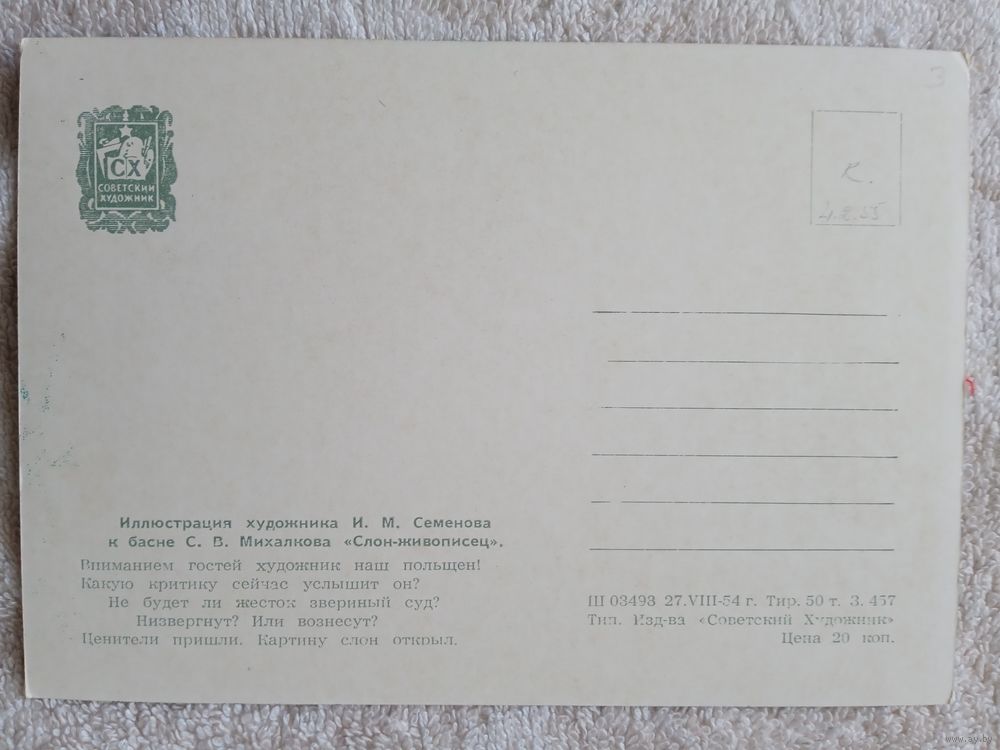 1954. Семенов. "Слон-живописец". Басня Михалкова
