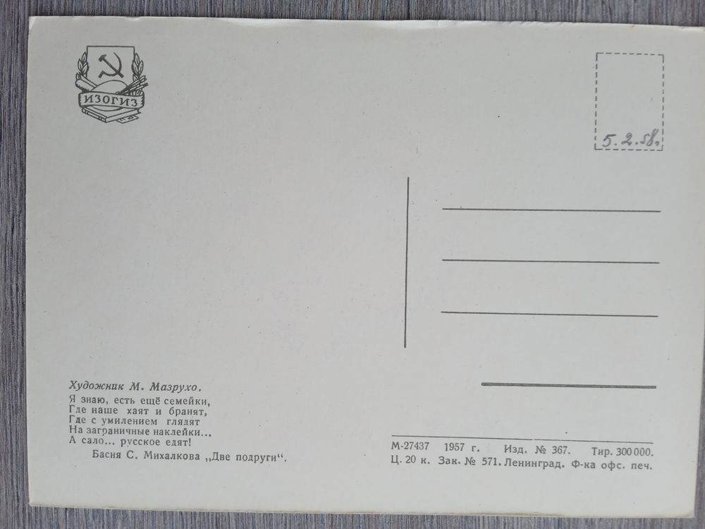 1957. Мазрухо. "Две подруги" Михалкова