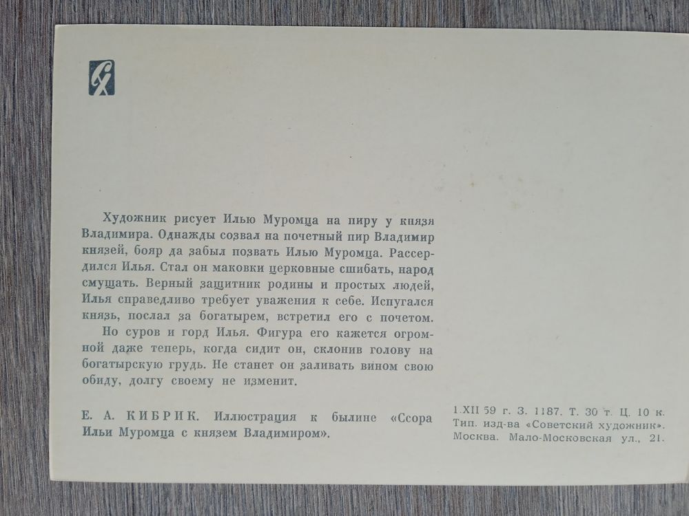 1959. Кибрик. "Ссора Ильи Муромца с князем Владимиром"