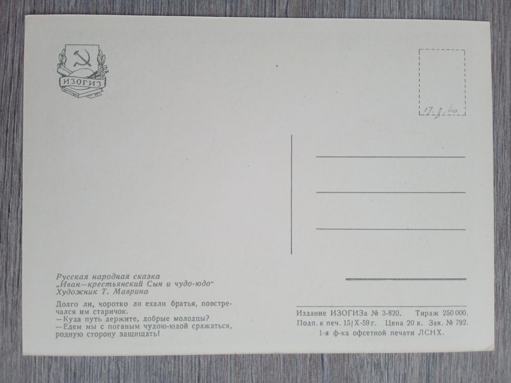 1959. Маврина. "Иван-крестьянский сын и чудо-юдо" сказка
