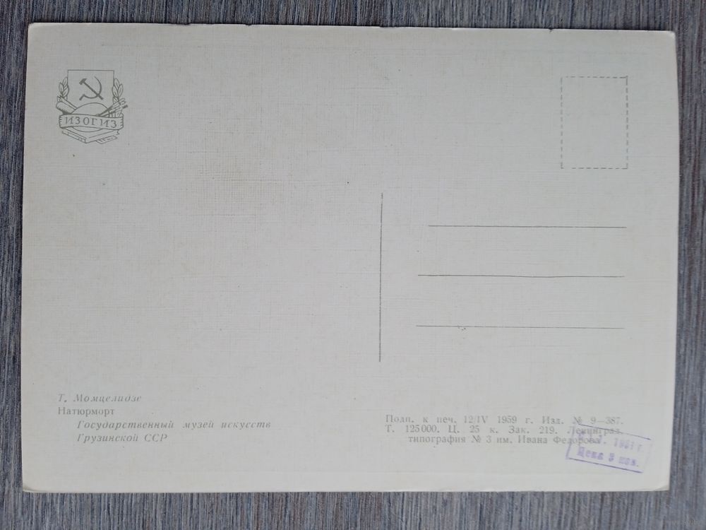1959. Момцелидзе. Натюрморт