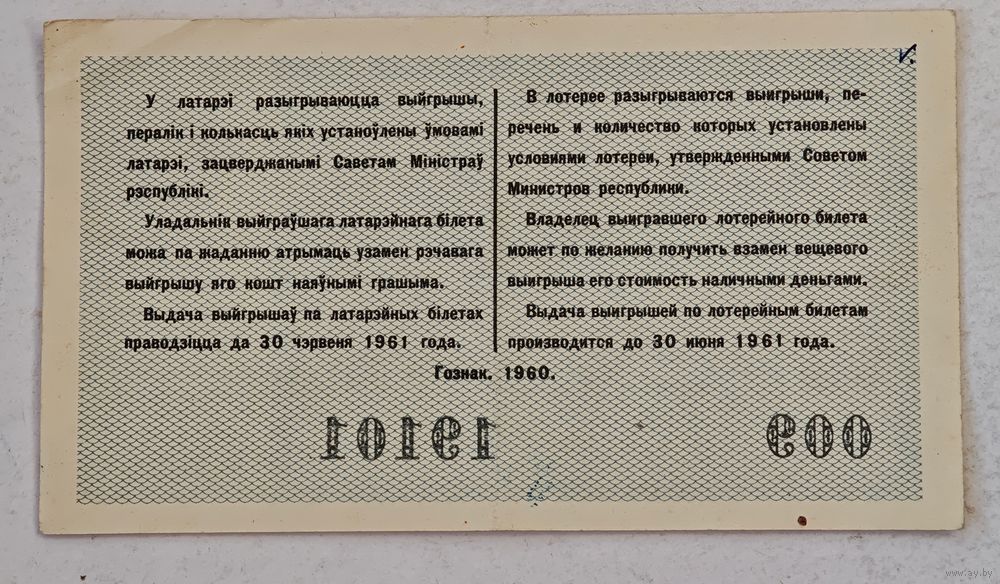 1960 год лотерейный билет БССР
