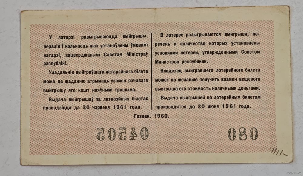 1960 год лотерейный билет БССР