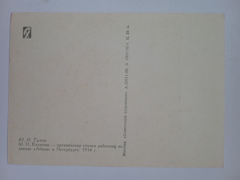 1960. Тулин. Калинин - организатор стачки работниц на заводе "Айваз" в Петербурге. 1914 г.