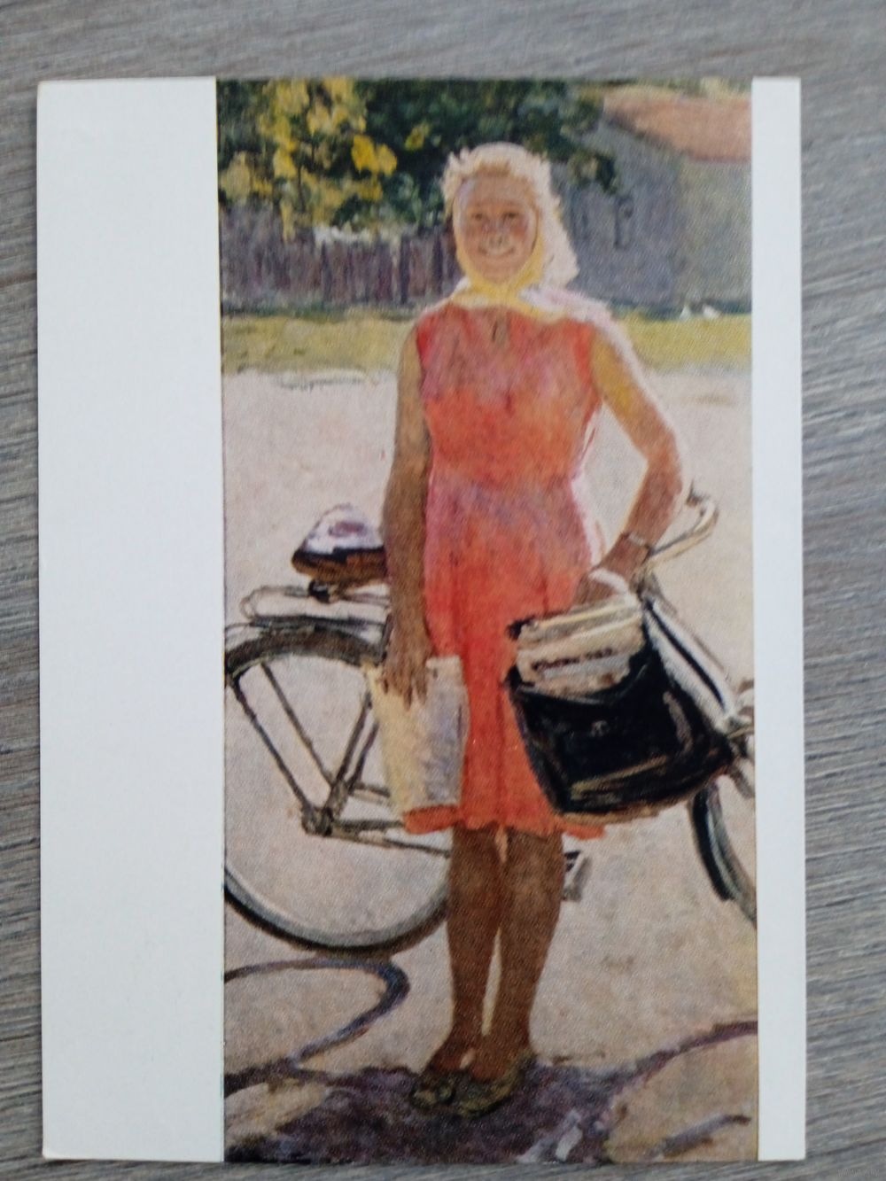 1960. велосипед, почта. Нечитайло. Любочка-почтальон