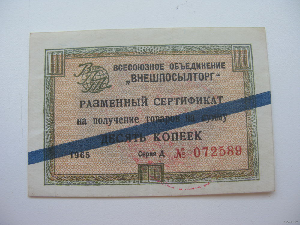 1965 г. Внешпосылторг Разменный сертификат 10 копеек ( Для работавших в соц. странах )
