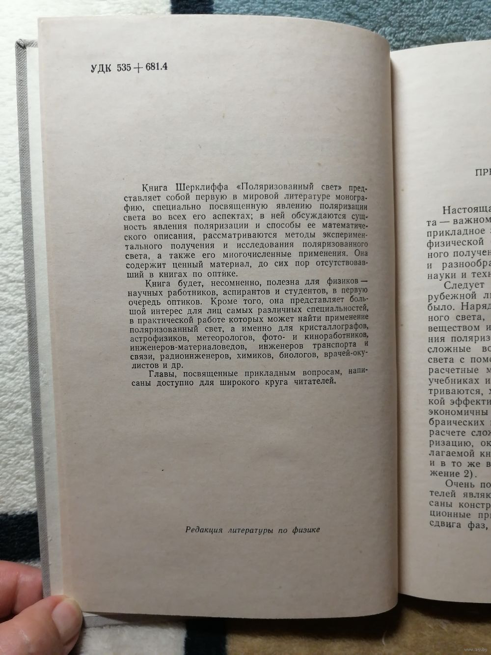 Книга представляет собой первую в мировой литературе монографию,специально посвященную явлению поляризации света во всех его аспектах.В ней обсуждаются сущность явления поляризации и способы ее математического описания,рассматриваются методы экспериментального получения и исследования поляризованного света,а также его многочисленные применения.