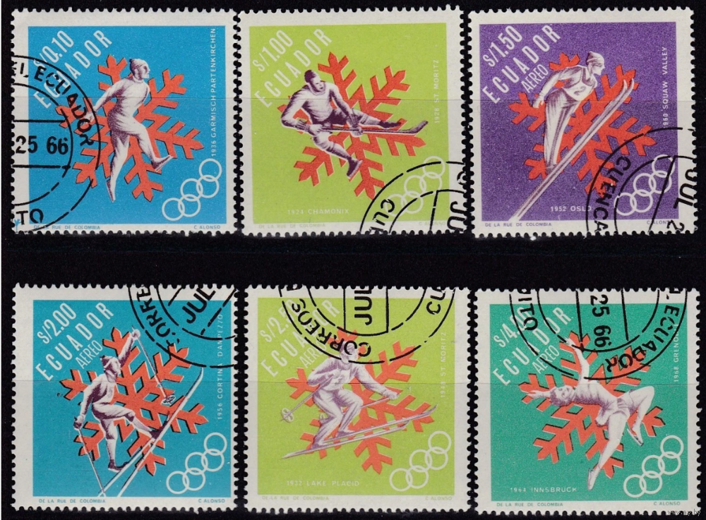 1968 Эквадор ЗОИ Гренобль Франция Хоккей Фигурное катание Лыжи серия