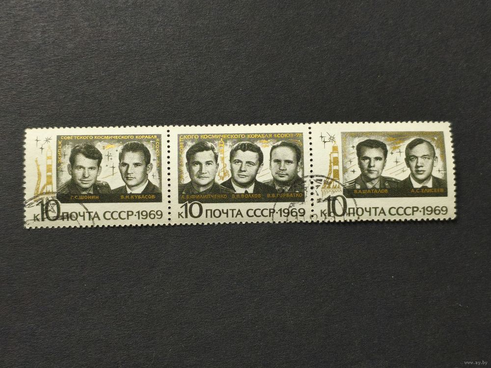 1969 СССР. Групповой космический полет. Космонавты - Г.С. Шонин, В.Н. Кубасов ("Союз-6"). А. В. Филипченко, В.Н. Волков, В.В. Горбатко ("Союз-7"), В.А. Шаталов, А.С. Елисеев ("Союз-8"). Полная серия