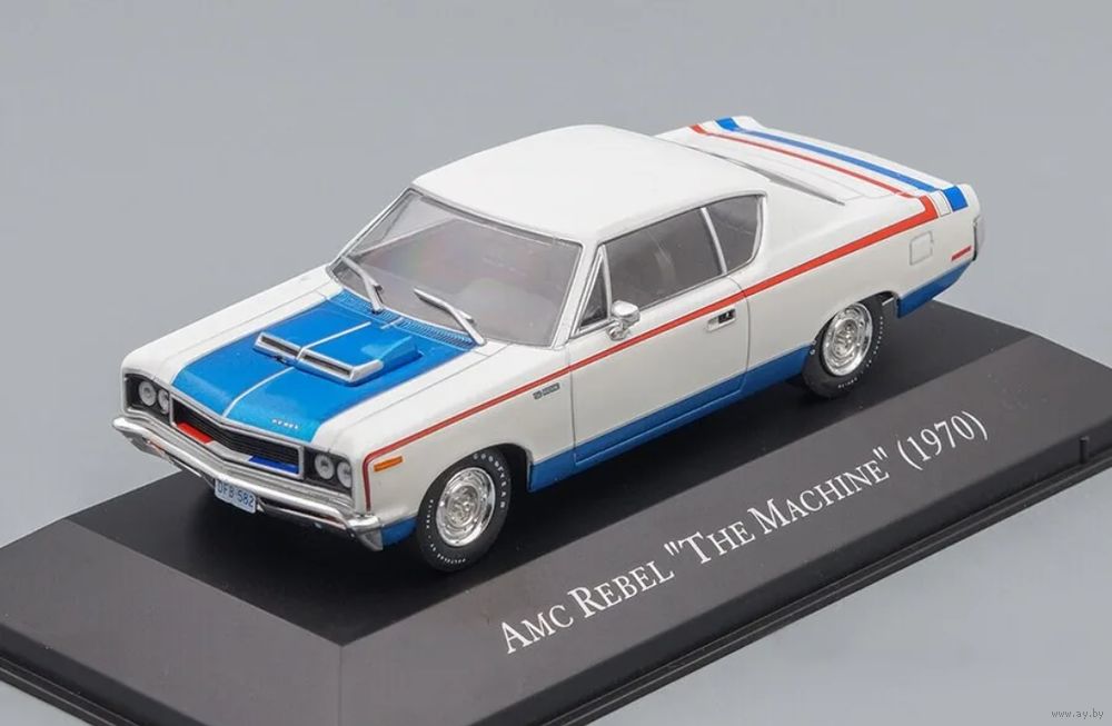 1970 AMC Rebel "The Machine" из серии American Cars. Легендарный американский масл. Производитель модели Altaya. Хорошая детализация, нарядная расцветка. Состояние нового. Есть подиум, блистер, небольшой буклет со всеми моделями серии.
