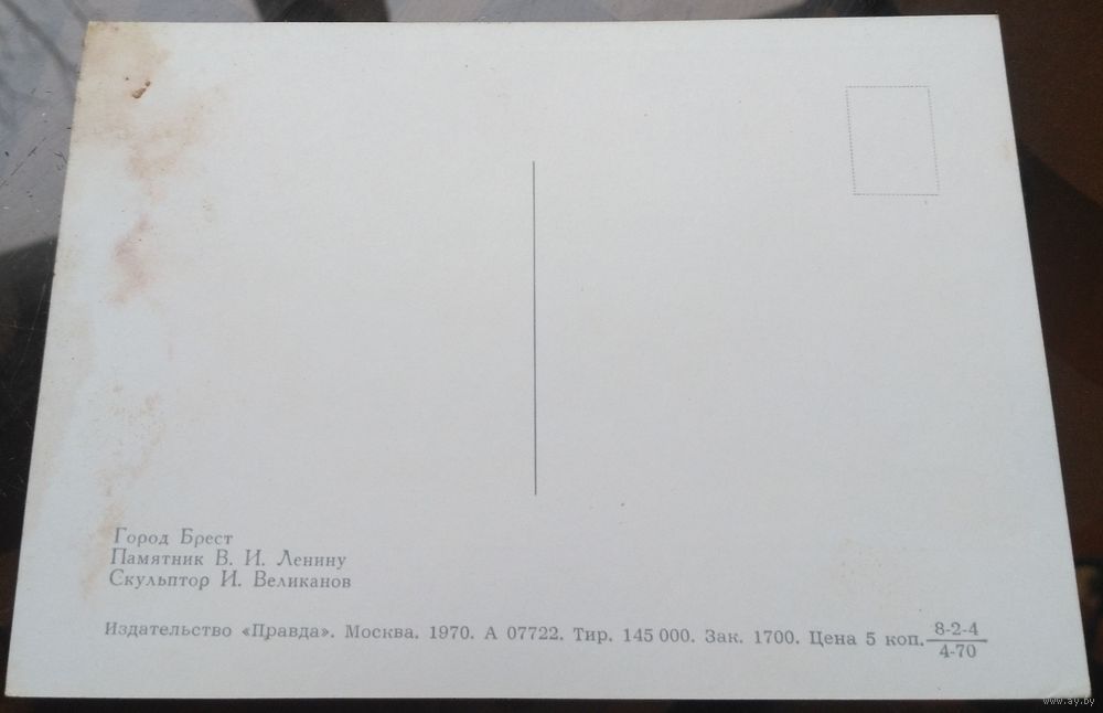 1970 год Брест Памятник Ленину Правая рука вытянута в приветствии