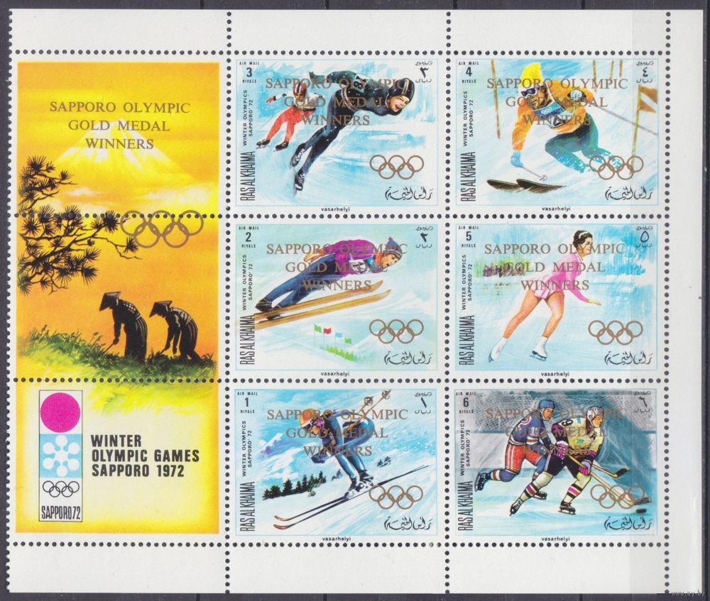 1971 Рас-Аль-Хайма 534-539VB+Tab 1972 Олимпийские игры в Саппоро / надпечатка 20,00 евро