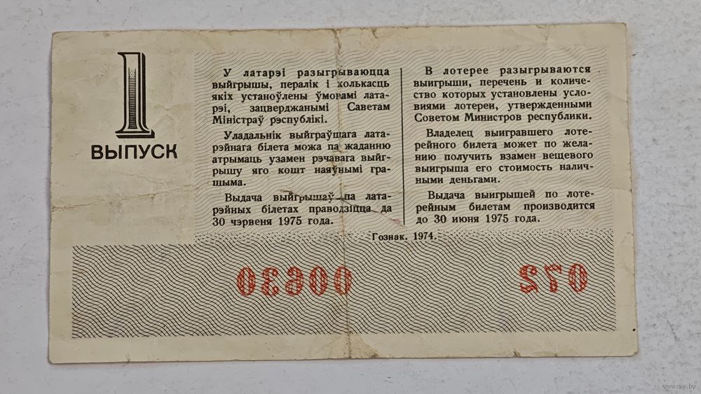 1974 год лотерейный билет БССР